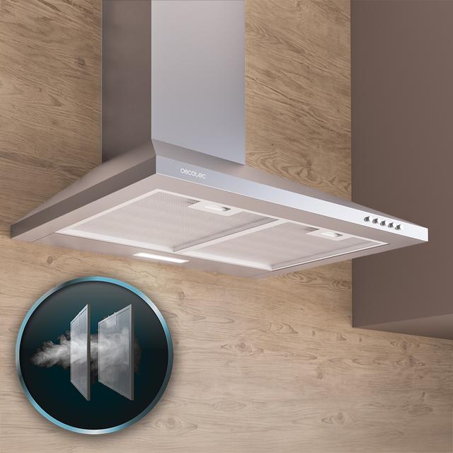 La sua aspirazione di 430m3/h consente di eliminare istantaneamente fumo e odori.