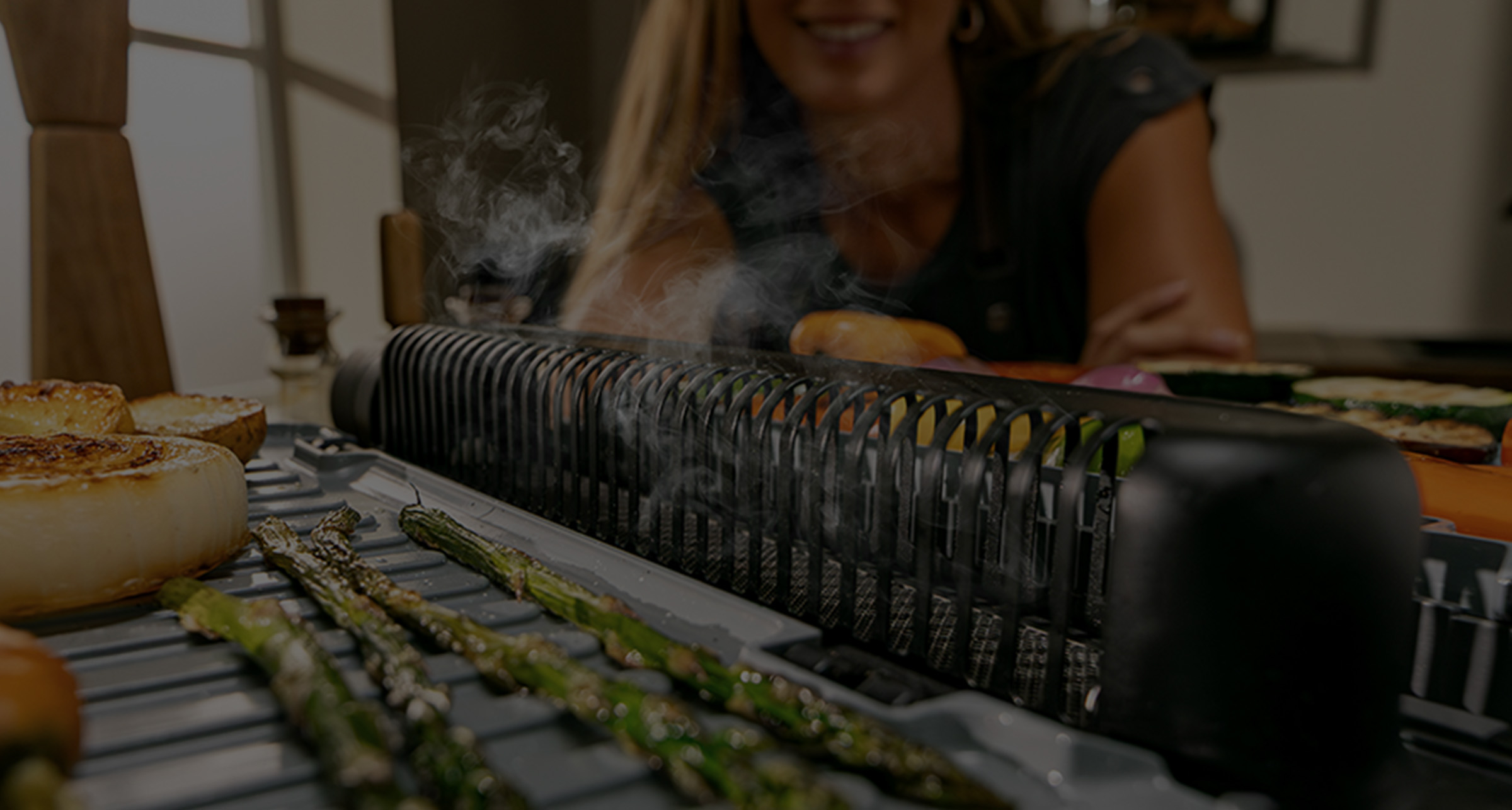 Addio a fumi e odori. La cappa Smokeless integrata li cattura alla fonte, per una cucina più sana e un ambiente sempre pulito.